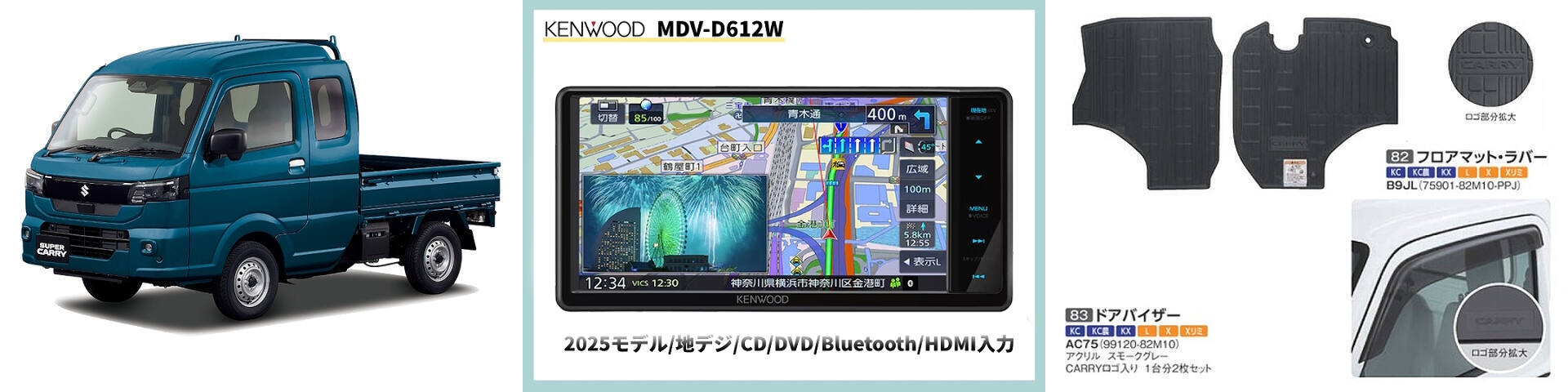 D612W オーディオ交換ガーニッシュ フロアマットラバー ドアバイザー (102155-118)
